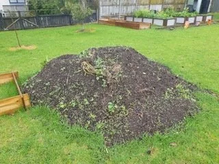 It’s been a tiring month in our new home. We have been hauling compost and lugging soil so that our new bins will thrive over winter. Once a bin is full we’ve been planting and mulching with straw. As the irrigation isn’t turned on yet are are relying on Tawhirimatea (god of the weather) to give us rain, and thank you Tahirimatea you have certainly been providing for us. We are getting rain every week which is keeping our crops watered.