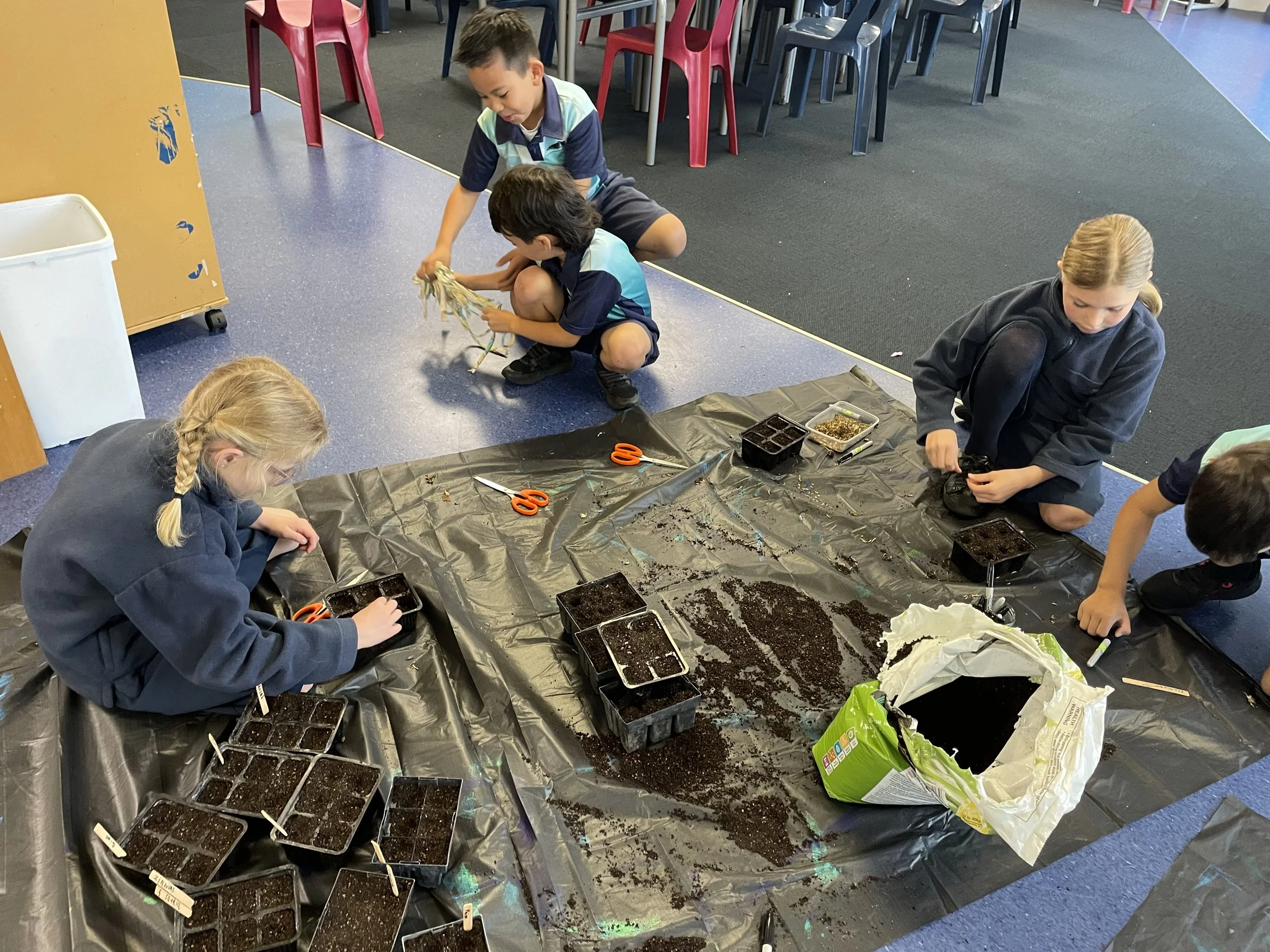 The year two & three kids have been busy planting our winter veggies in seedling trays.