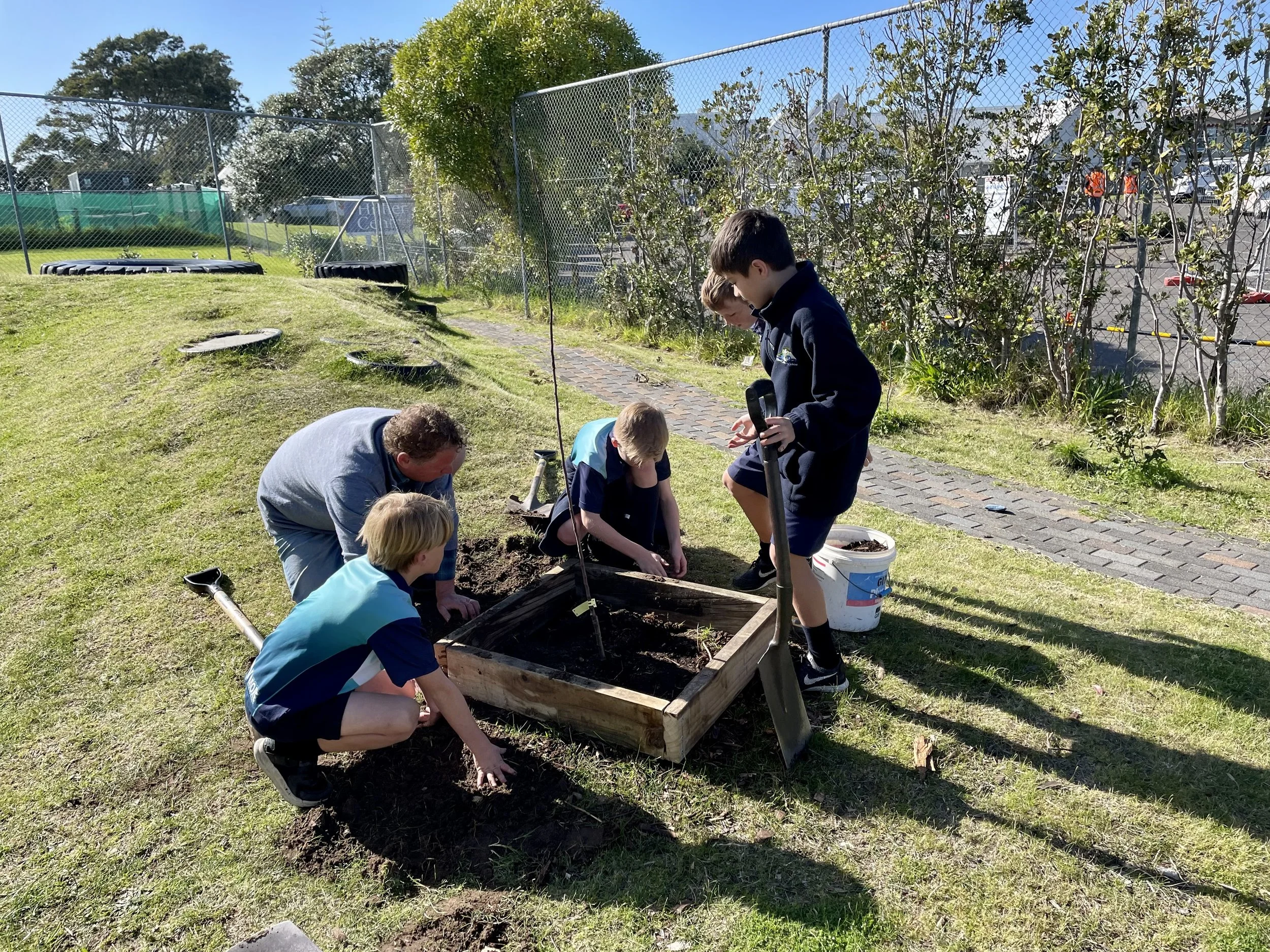 The year five & six boys worked really hard digging the holes for those as the soil was very dry and sandy, they helped to prepare the soil with compost and worm cast.