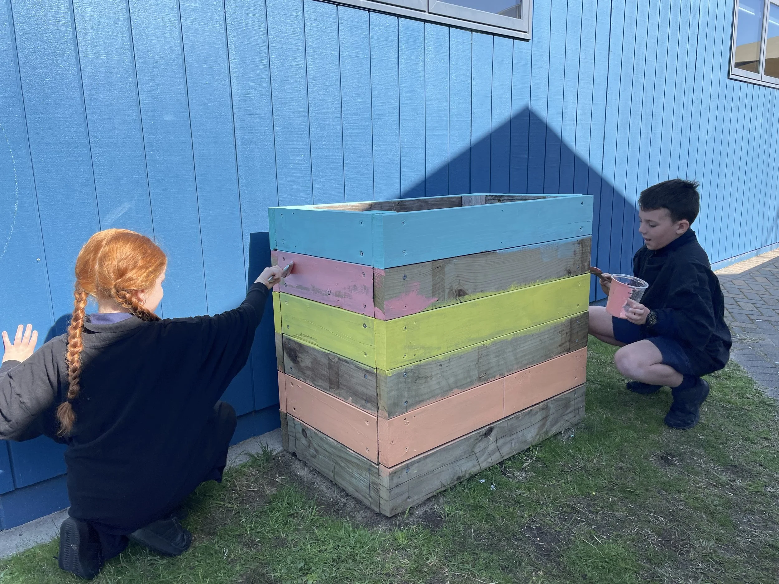 The garden club and Mr Webster started building five new raised veggie beds – they had to measure the area and design the beds to best utilise the space. And now our growing space has doubled in size!