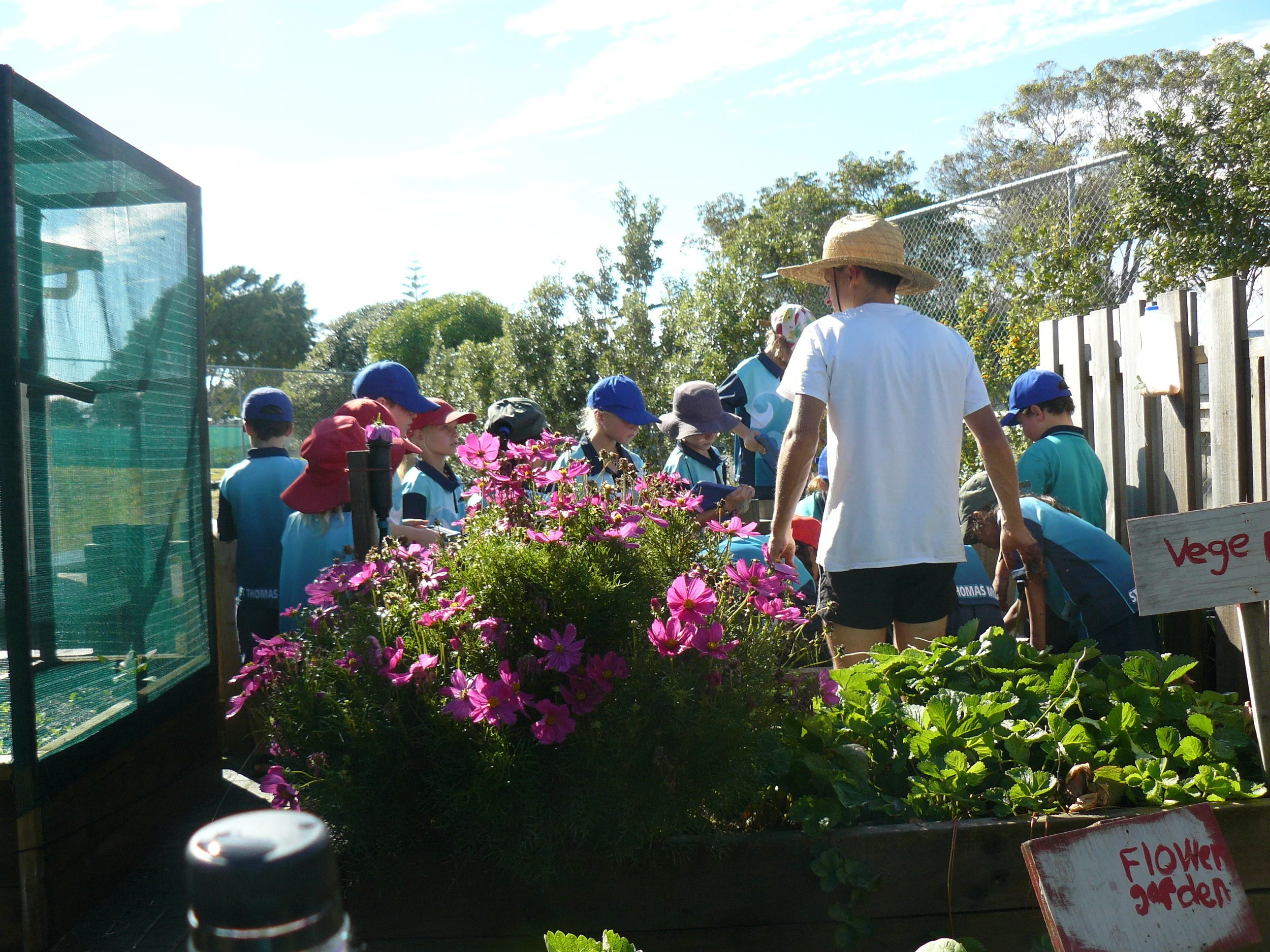 My what fantastic kids you have here at St Thomas More! We’ve spent our first few weeks getting to know eachother and our gardens, and getting them back into shape after a long hot summer. There are many beautiful flowers, strawberry plants and swan plants (in the butterfly gardens). There’s also an abundance of basil thriving in the summer sun and potatoes which have just finished doing their thing.